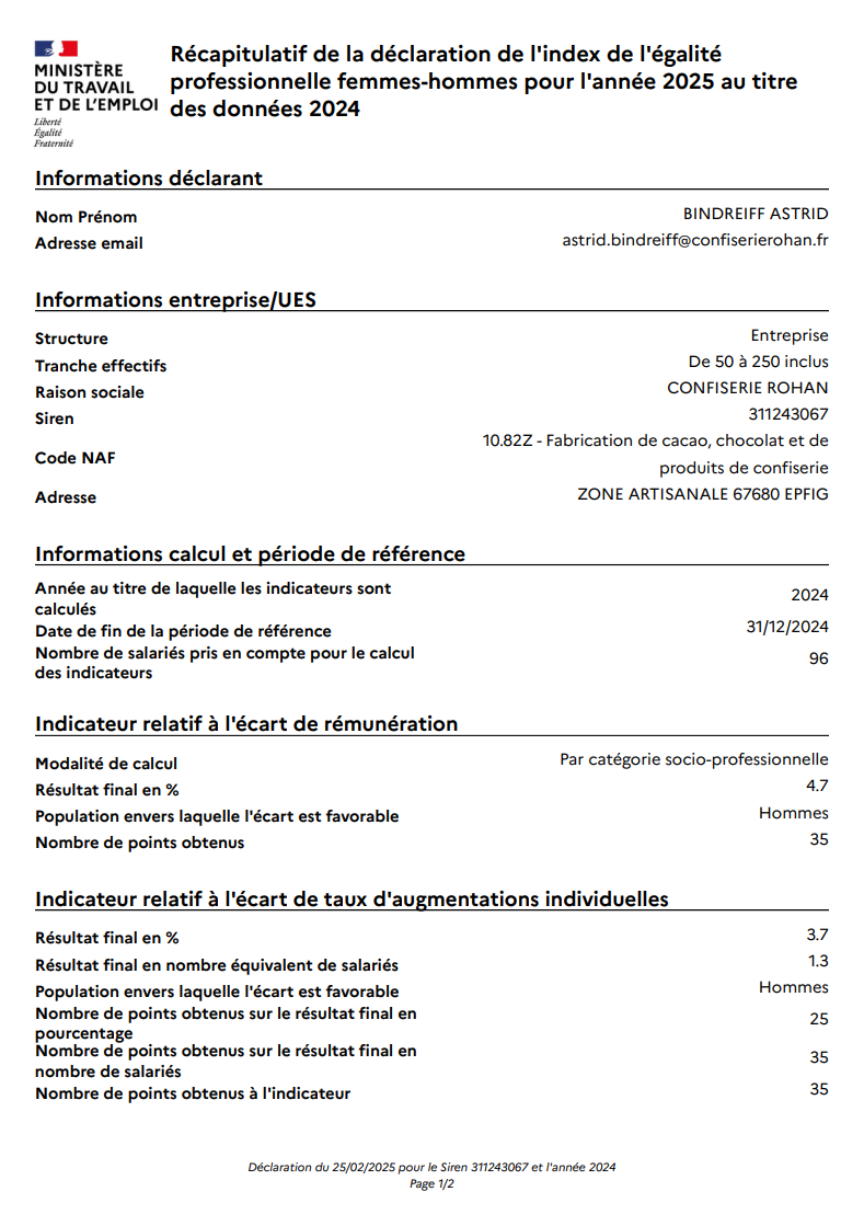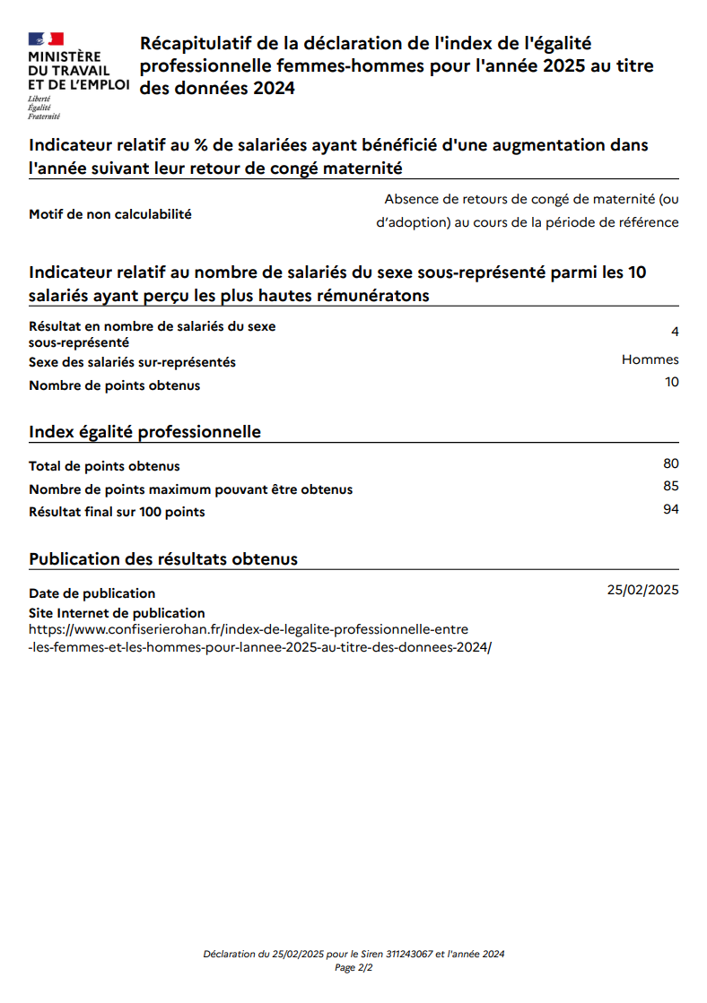 Index de l’égalité professionnelle entre les femmes et les hommes pour l’année 2025 au titre des données 2024